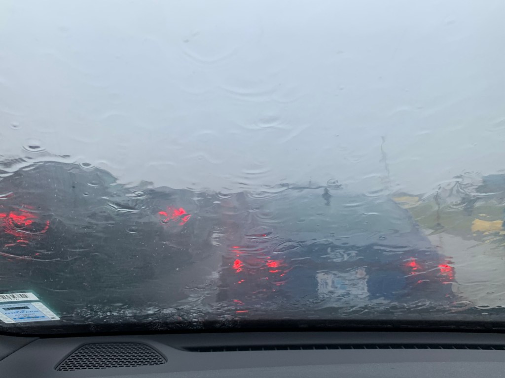 Die Warnmeldung vor Überflutungen, Stürmen und Starkregen übertrieb keineswegs. Es war als hätte der Himmel alle Schleusen gleichzeitig geöffnet. An ein Besuchen von irgendetwas war nicht zu denken. Nicht mal an ein Aussteigen. Das Wasser stand auf den Straßen und spritzte unablässig an beiden Seiten weit nach oben. Im Grunde wäre man mit einem Boot auf der Straße besser bedient gewesen als mit einem Auto. Die Fahrt auf der Autobahn erfolgte mit wenig mehr als 30 km/ h und konstant eingeschalteten Warnblinkern, da man andere Fahrzeuge sonst überhaupt nicht erkannte. Eigentlich schwamm und glitt man mehr vorwärts als dass man fuhr. (Jedes Aquaplaning-Training ist ein Witz dagegen.) Das waren sehr, sehr lange 200km und es hörte tatsächlich auch erst wenige Kilometer vor unserem Ziel auf zu regnen. So eine Fahrt muss ich erstmal auch nicht wiederholen.
