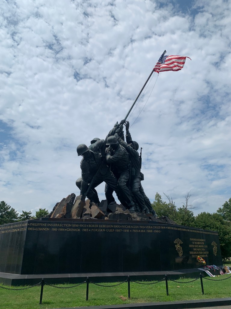 Auf dem Weg zum Arlington Cemetery kommt man – von Washington aus kommend – auch noch am Mahnmal für das United States Marine Corps vorbei. Vorlage hierfür war das berühmte Foto des Kriegsfotografen Joe Rosenthal vom 23. Februar 1945.