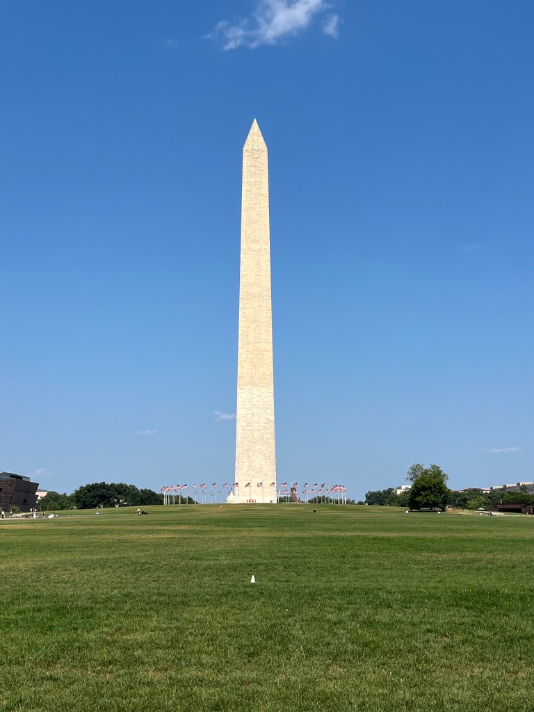 Ansonsten ist in der Stadt einfach alles wahnsinnig groß. Es wirkt, als müsste alles einfach noch ein Stück imposanter, noch pompöser sein. Lediglich Wolkenkratzer sucht man in Washington vergebens, denn Gebäude dürfen in der Stadt nicht größer sein als die angrenzende Straße breit ist zuzüglich 6,10 Meter. Nur drei Gebäude – die schon bestanden bevor das entsprechende Gesetz erlassen wurde – sind höher. Eines davon ist das Washington Monument.