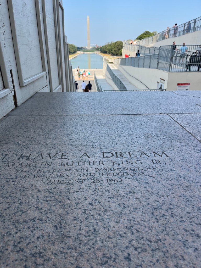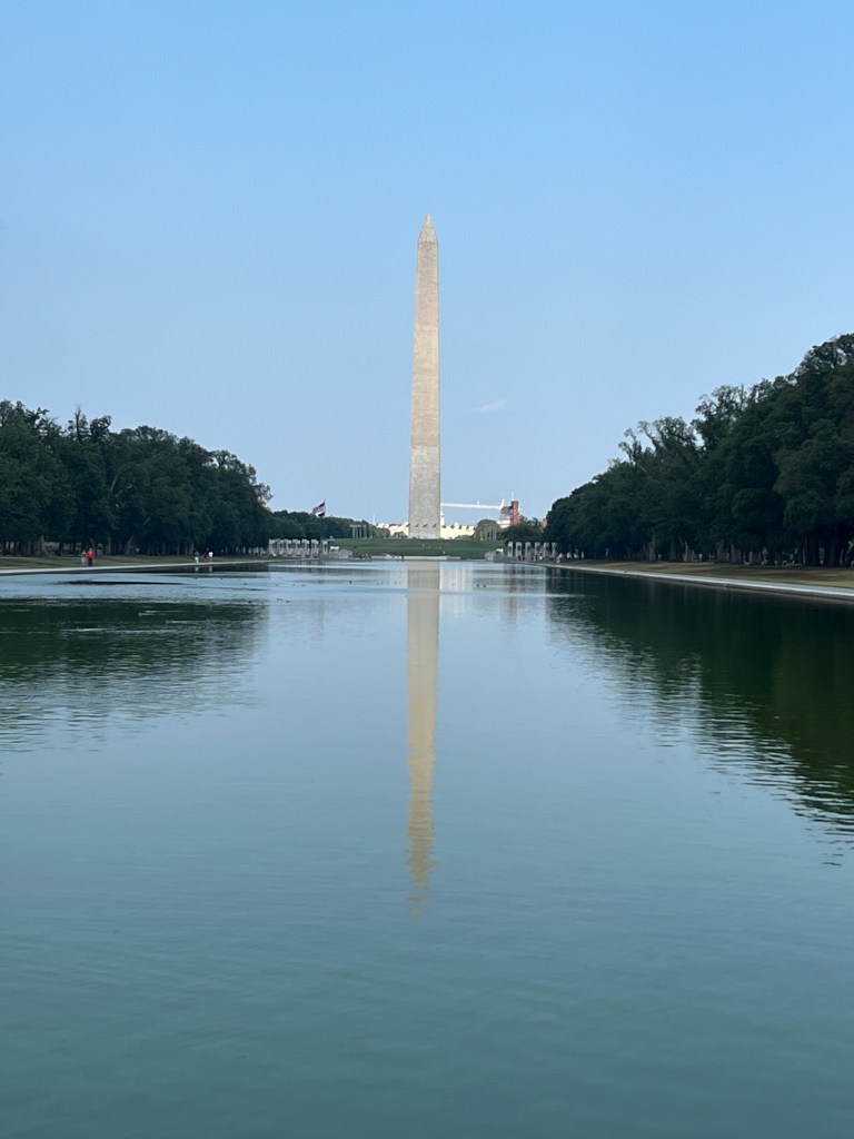 Dazwischen liegen einige Sehenswürdigkeiten wie der (Lincoln Memorial) Reflecting Pool (der so heißt, weil sich darin, je nachdem wie man darauf schaut, das Lincoln Memorial oder das Washington Monument spiegelt).