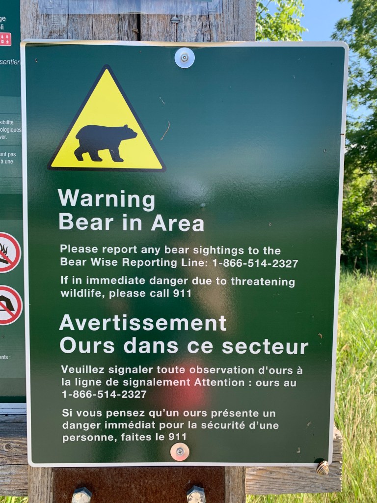 Es ist alles so grün (und momentan auch sehr warm) hier, dass mir die Vorstellung ein wenig schwerfällt, dass es hier sechs Monate im Jahr kalt und verschneit sein soll. Aber es gibt immer mal Schilder am Straßenrand, die einen daran erinnern. Die Warnungen vor Vereisungen von Brücken zum Beispiel. Oder vor Schneeverwehungen. Oder die Hinweise oder Verbotsschilder für Schneemobile entlang einer gewöhnlichen Straße. 😀