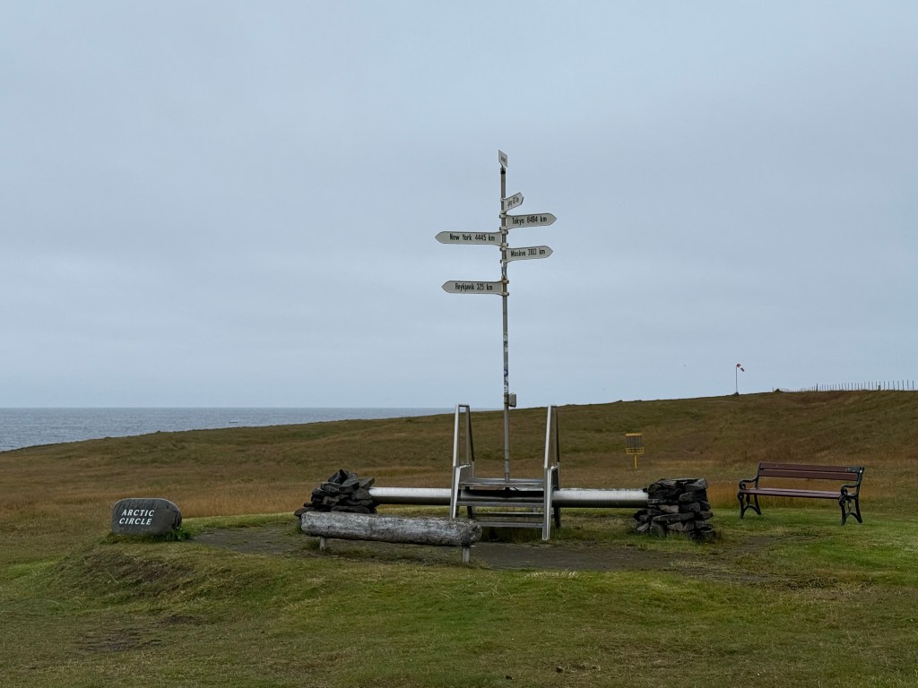 Die Insel Grímsey ist die nördlichste Insel Islands und liegt genau auf dem Polarkreis. Also… noch. Da die Neigung der Erde nicht konstant ist, verschiebt sich der Polarkreis jedes Jahr um ein paar Meter. Im Jahr 2031 wird der Polarkreis daher bereits im Meer nördlich von Grímsey verlaufen und nicht mehr über die Insel selbst. (Tatsächlich verläuft er ab 2039 wohl noch einmal über Grímsey bevor er 2047 dann für längere Zeit ins Meer ‚verschwindet‘.) Möchte man also mal in Island auf dem Polarkreis stehen, muss man sich ein bisschen beeilen, 😀 Und ich wollte sehr gern.